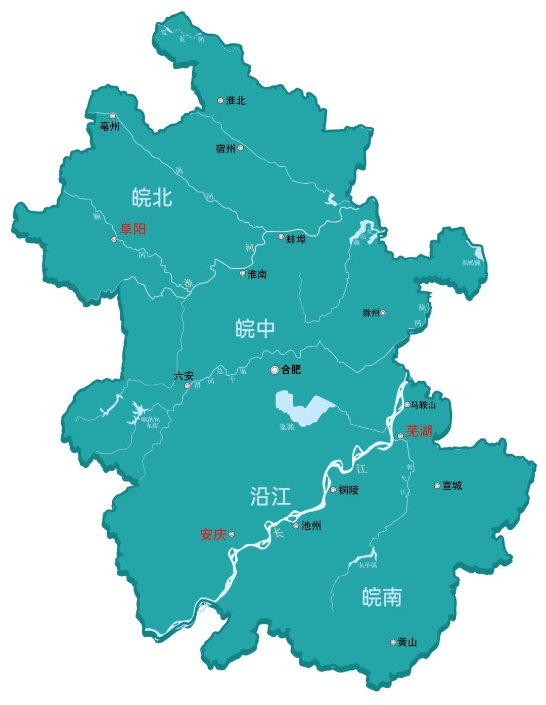 安徽被这两条水系分割为三个板块